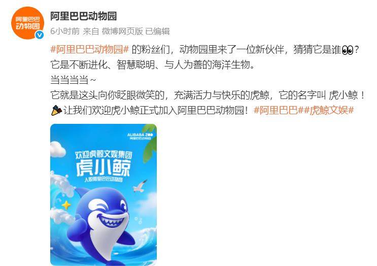 近日,阿里巴巴动物园的官方社交媒体账号发布了一则令人瞩目的消息,正式宣布一位新成员的加入——虎小鲸。这一消息引起了广泛关注和讨论。